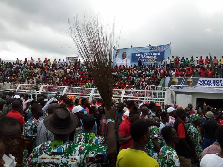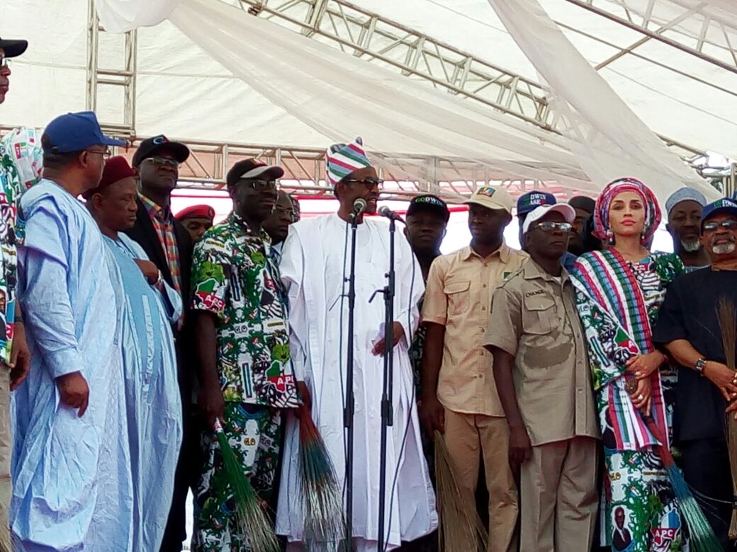 A few APC governors such as Akinwunmi Ambode of Lagos and Bindo Jibrilla of Adamawa are also present at the grand rally to mark off the end of the campaigns in the state.
