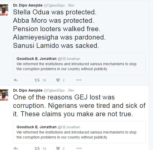 A twitter user accused Dr Jonathan of breeding the “next generation of looters”