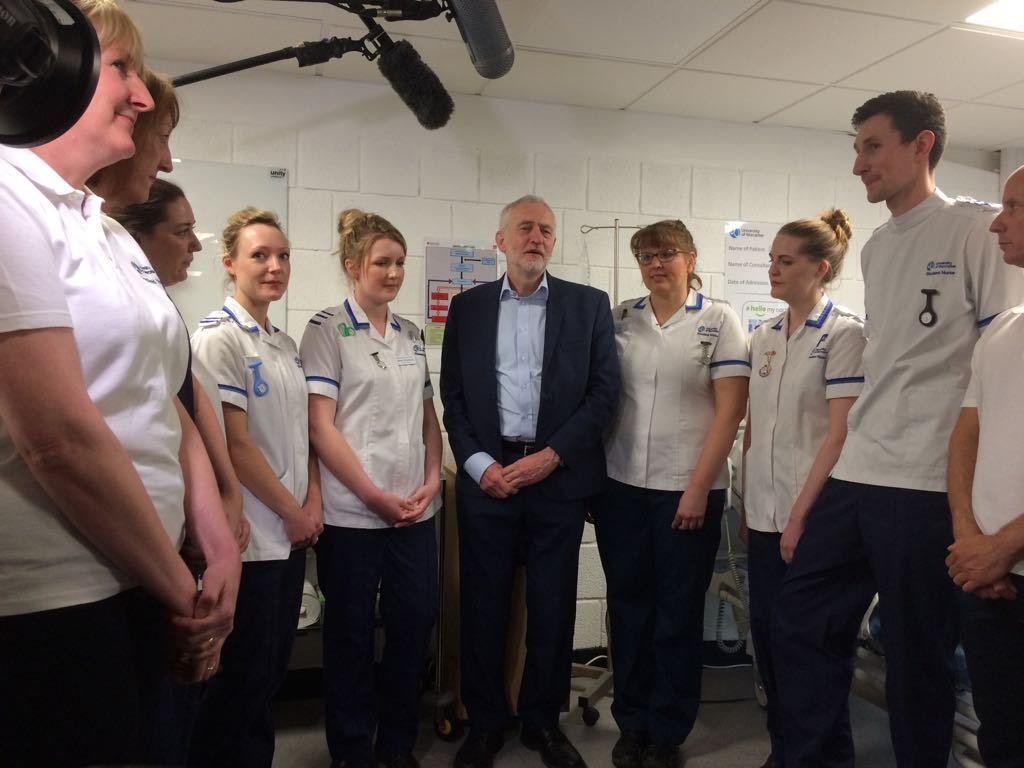 Jeremy Corbyn who has put the NHS at the heart of his campaign is currently in Leamington Spa about to address the public.