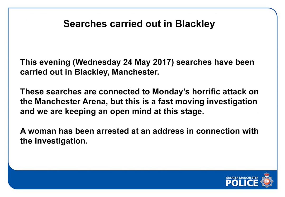 An arrest has taken place in Nuneaton and a woman has also been arrested from an address in Blackley, Manchester, bringing the total arrest to seven.