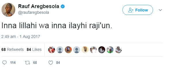 He wrote: “inna lillahi wa inna inayhi raji’un.”