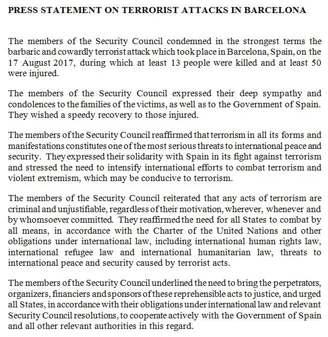 The Secretary of State for Foreign Affairs Boris Johnson said: “My thoughts are with the Spanish people & those affected by #Barcelona attack. Together we will defeat terrorism”