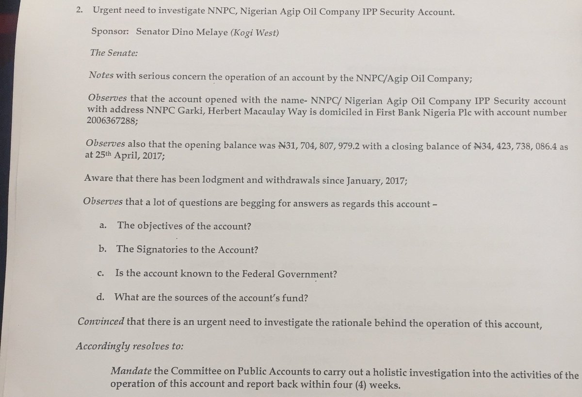 Senator Dino Melaye, who represents Kogi West Senatorial District, raised the alarm about a suspicious account being used by the oil corporation and Agip oil company, on the floor last week.