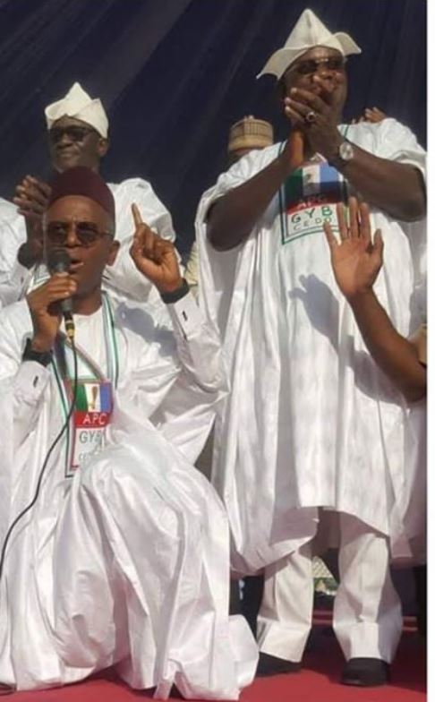 The Governor of Kaduna State, Nasir El-Rufai went on his kneels to beg the people of Kogi, so that his party’s Governorship candidate in the state can be given a second term in office.Â