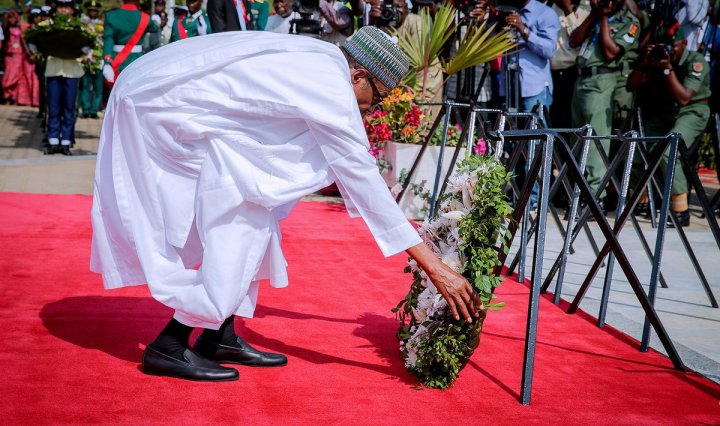 By Danjuma Aliyu President Muhammadu Buhari and his Vice, Yemi Osinbajo today, paid tributes to soldiers who died in service. Dressed in traditional white Babariga, the President laid a wreath in honour of fallen soldiers, some of whom lost their … Continue reading Buhari, Osibanjo, Saraki Lay Wreath At Armed Forces Remembrance Day